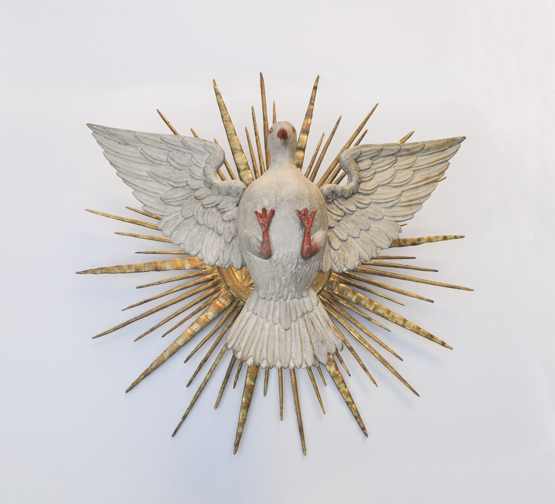 Alpenländisch/Regione alpina Colomba dello Spirito Santo con raggiera, XIX secolo;Legno, scolpito a tutto tondo e dipinto, raggiera