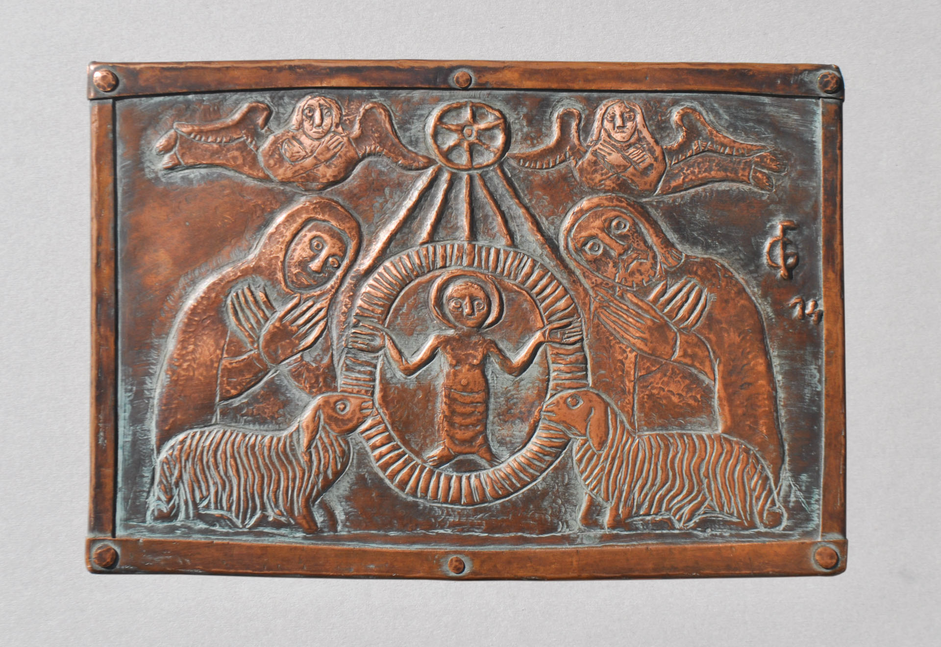 Friedrich Gurschler (Schnals/Senales 1923 - Meran/Merano 2020) Nascita di Cristo, 1974;Rilievo in rame lavorato a sbalzo, 20,5 x 30,5 cm