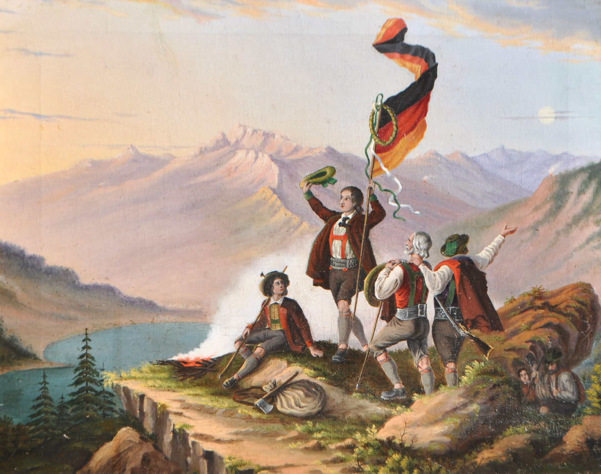 Nach/da Joseph Pfeiffer Conquistatori di vette 1848;Olio su tela, 36,5 x 45 cm, restaurato, in cornice