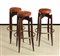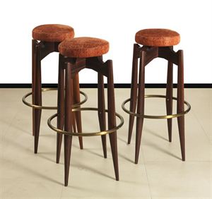 SGABELLI Tre sgabelli in legno con seduta in velluto rosso, produzione Colli Torino, metà XX secolo H 120 cm