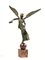 in bronzo, in patina verde, raffigurante Nike alata su sfera, base in marmo, alt. cm 69
