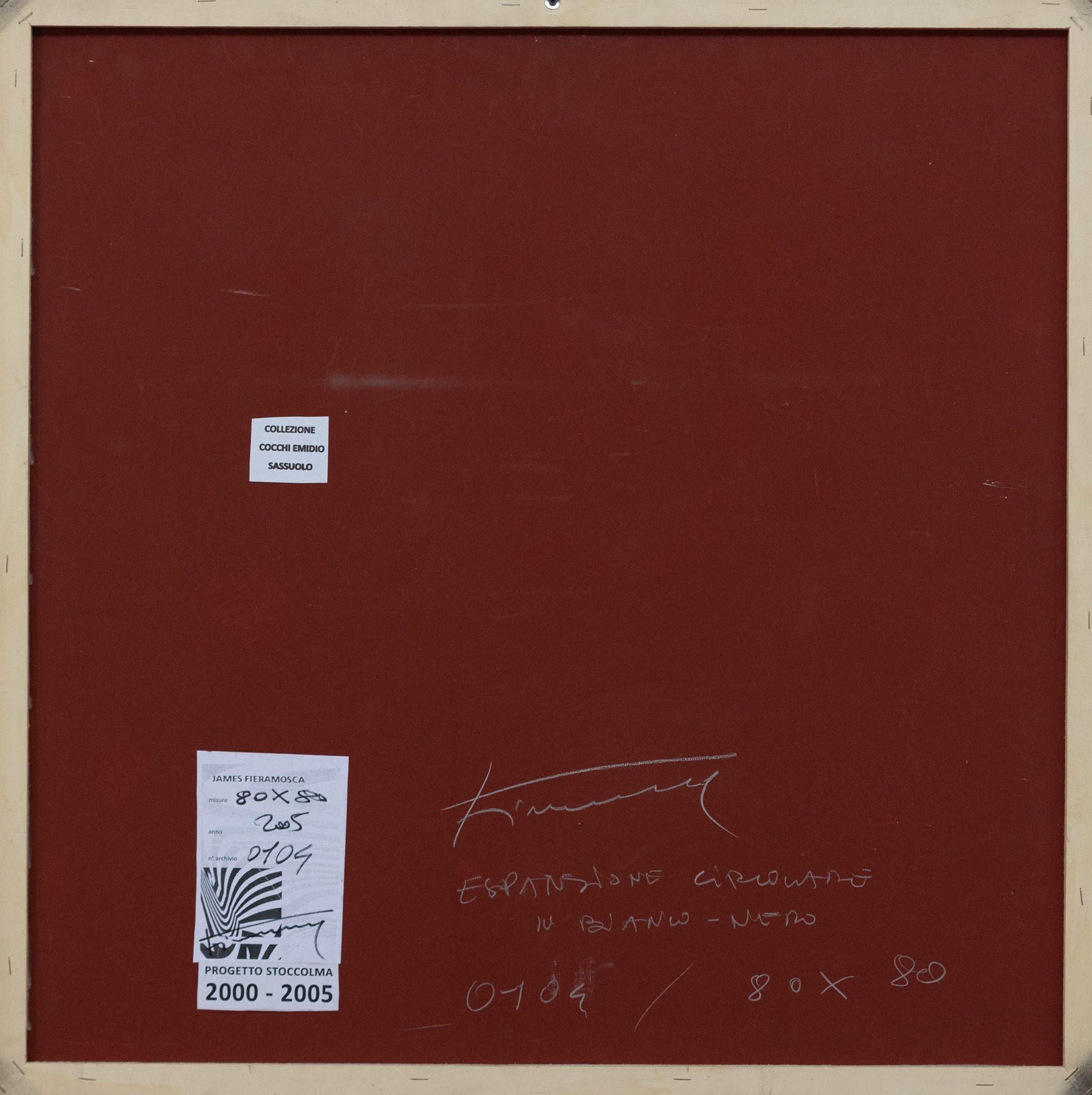 Al retro firma, titolo ed etichetta con numero archivio dell'artista