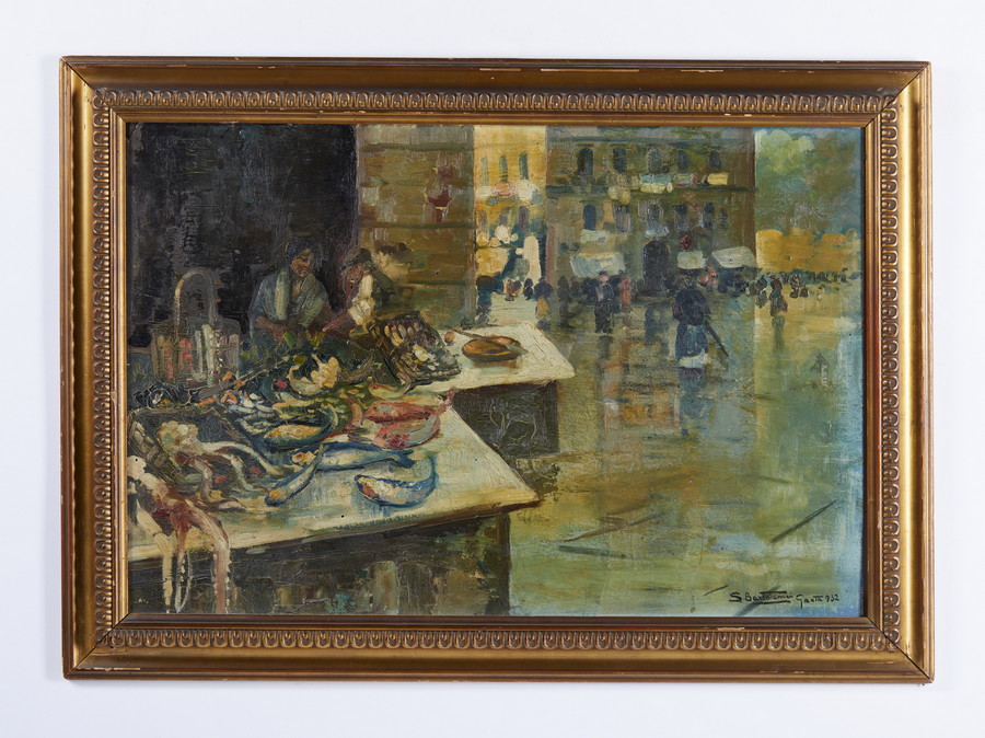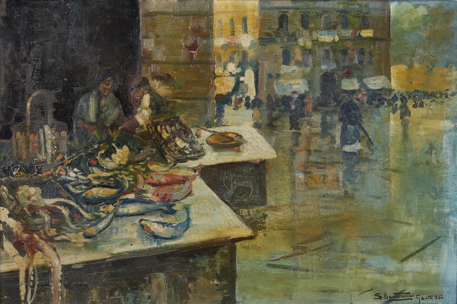 BARTOLOMEI SATURNO (1882 - 1965) DOPO LA PIOGGIA. 1932. Olio su tavola. Cm 74,00 x 50,00. firma e data