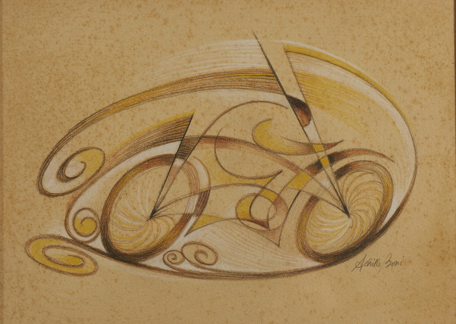 BONI ACHILLE (1896 - 1956) VELOCICLO. Tecnica mista su cartone. Cm 40,00 x 29,00. firma