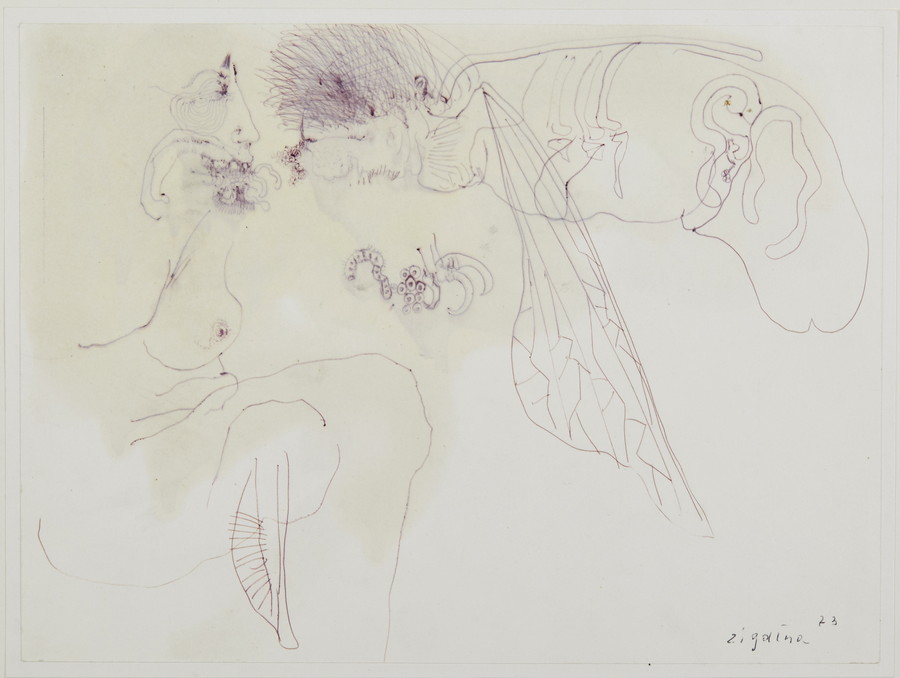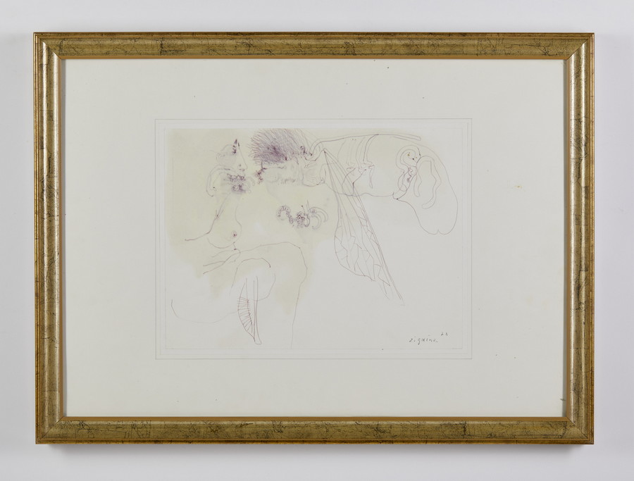 ZIGANIA GIUSEPPE (1924 - 2015) SENZA TITOLO. 1973. Biro su cartoncino. Cm 40,50 x 30,00. firma e data