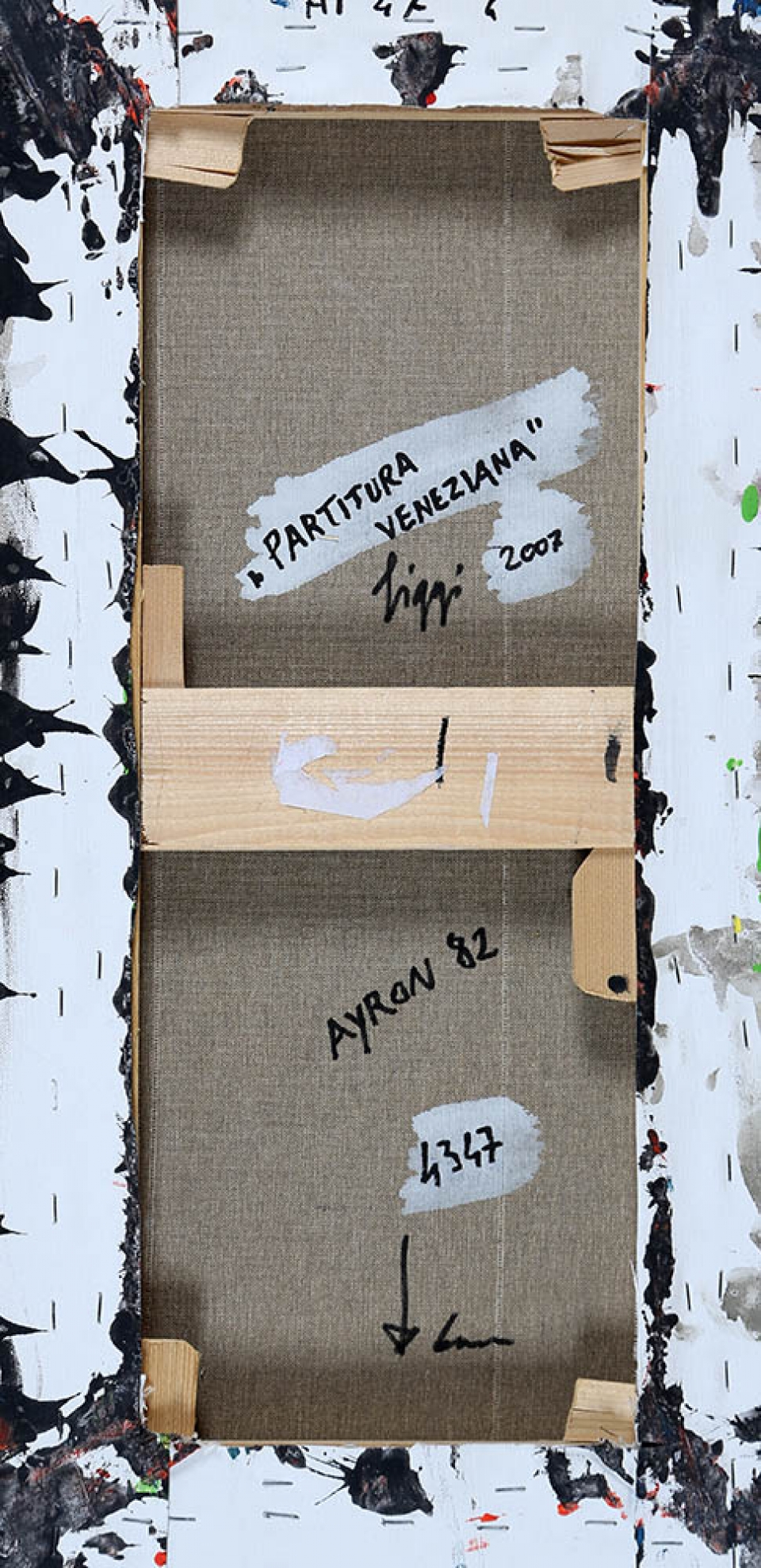 GASTONE BIGGI 1925 - 2014 " Ayron 82, Partitura Veneziana ", 2007 Idropittura su tela, cm. 60 x 30 Firmato e datato sul retro Autentica dell'artista su fotografia Timbro Art Time Brescia su fotografia Prov. Collezione Privata
