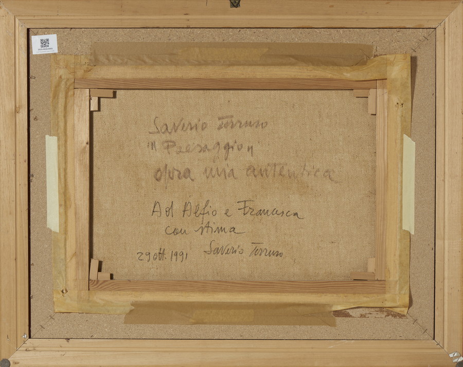 TERRUSO SAVERIO (1939 - 2003) PAESAGGIO . Olio su tela. Cm 70,00 x 50,00. sul retro: firma, titolo e dedica ad personam