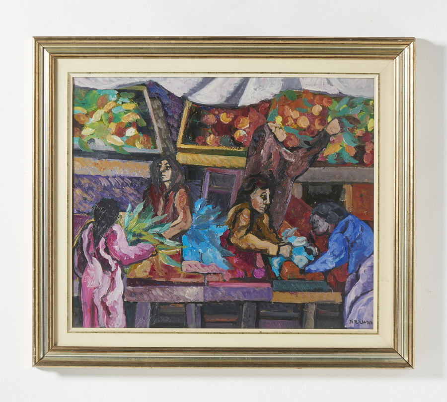 TERRUSO SAVERIO (1939 - 2003) AL MERCATO. Olio su tela. Cm 60,00 x 50,00. firma