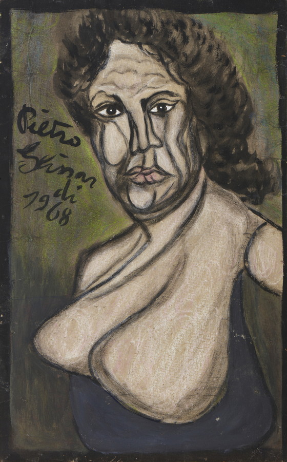GHIZZARDI PIETRO (1906 - 1986) LA POVIGLIESE . 1968. tecnica mista su cartoncino. Cm 49,50 x 78,50. firma e data
