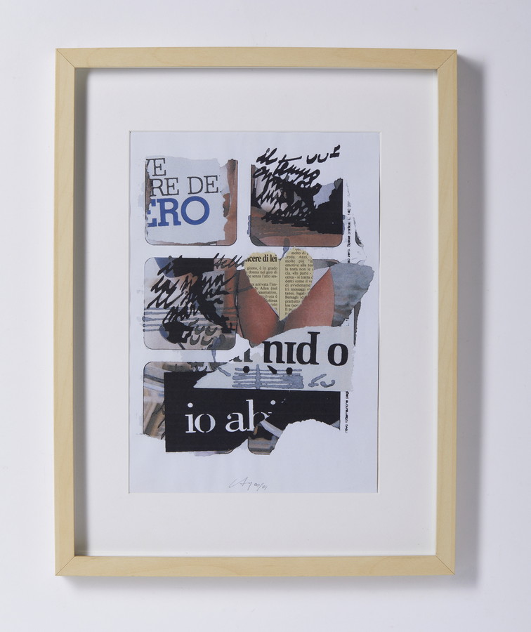 FONTANA GIOVANNI (n. 1946) SENZA TITOLO. collage su carta. Cm 20,00 x 29,70. firma e data (2000/2001)