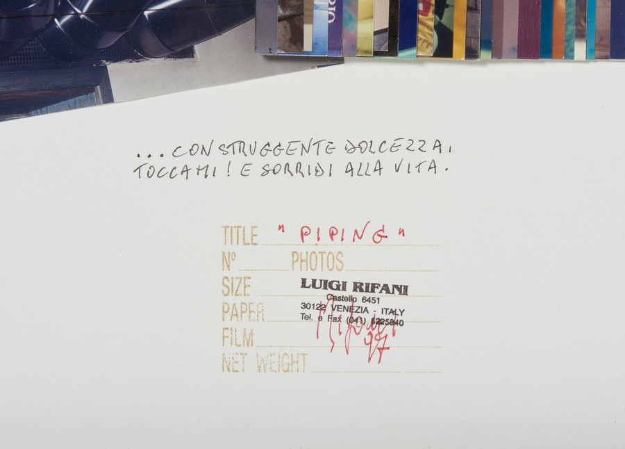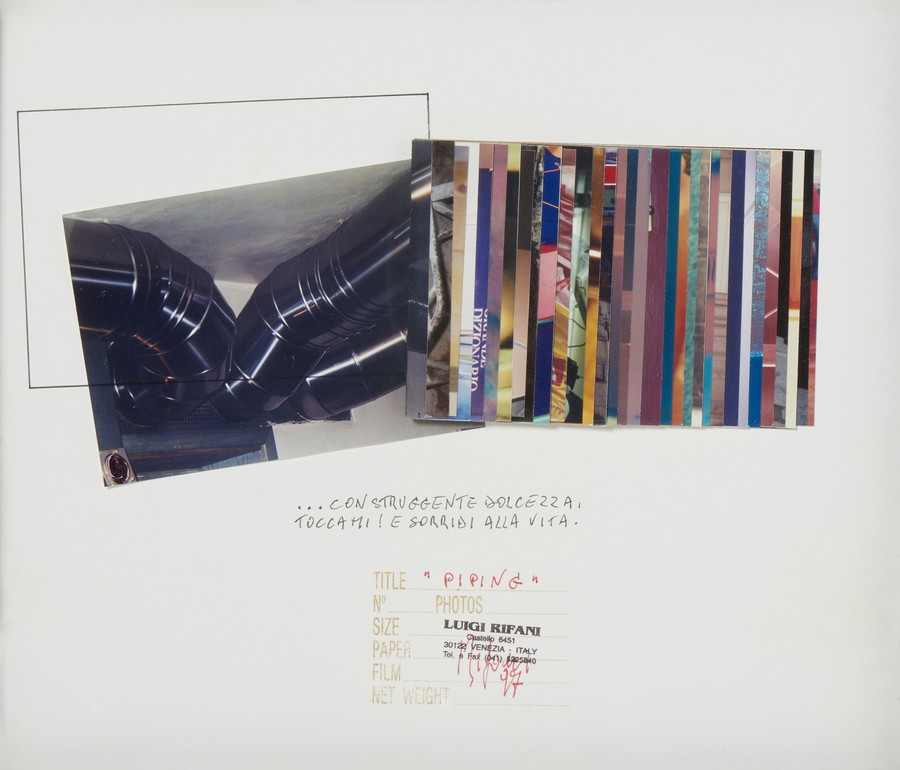 RIFANI LUIGI (n. 1940) PIPING . 1997. Collage e pennarello su cartone pressato. Cm 35,00 x 30,00. firma, data e titolo