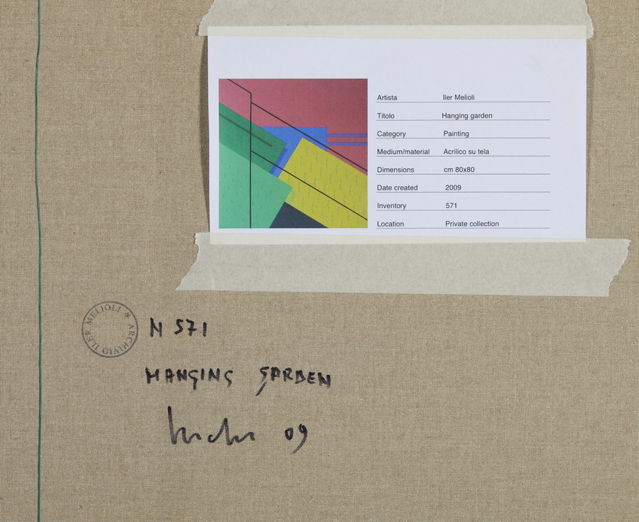 MELIOLI ILER (n. 1949) HANGING GARDEN. 2009. acrilico su tela. Cm 80,00 x 80,00. firma e data