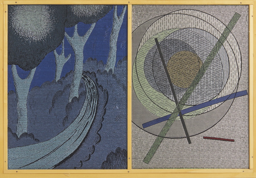 VERONESI LUIGI (1908 - 1998) LA STRADA (1932) E COSTRUZIONE (1981). 1992. Tessuto su tavola. Cm 40,50 x 28,00. firma e data