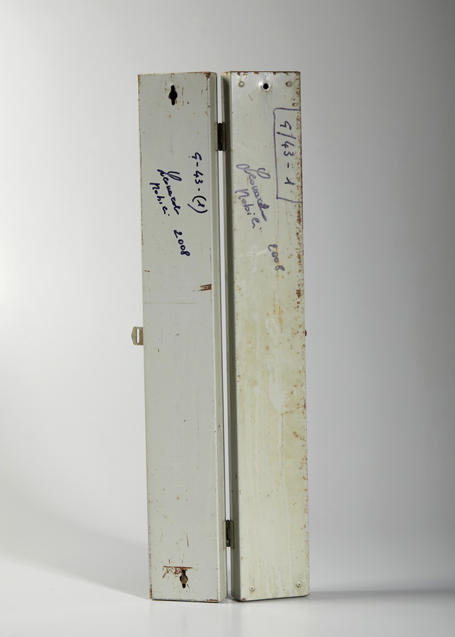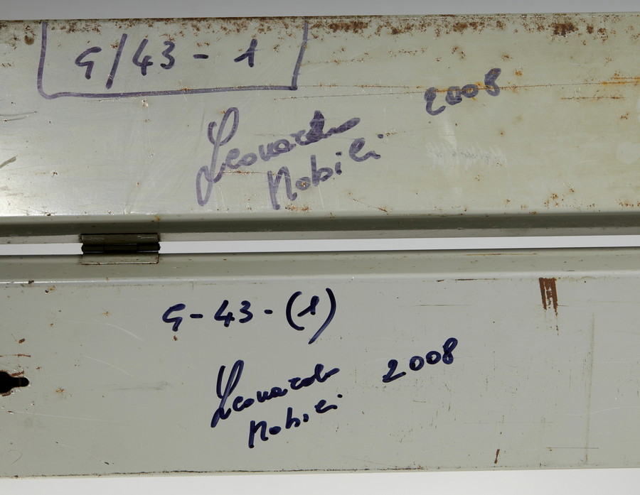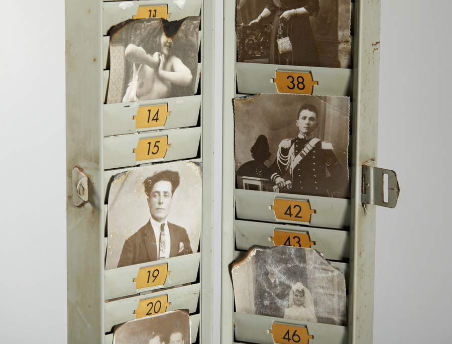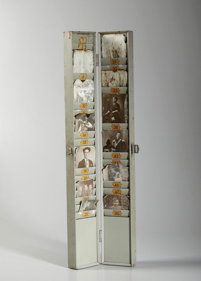 NOBILI LEONARDO (n. 1949) MISURATORI DEL TEMPO. 2001. Schedari a foto invecchiate. Cm 26,00 x 90,00 x 5,00. firma, titolo e data