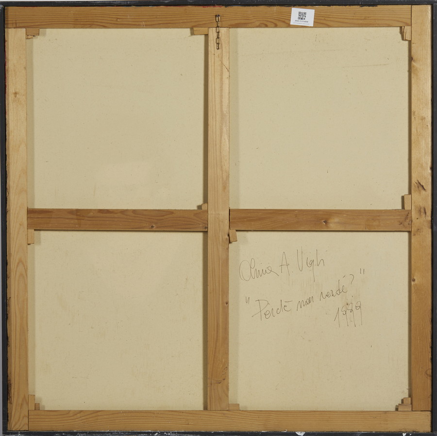 VIGHI OLIVIA PERCHE' NON VEDE?. 1999. Olio su tela. Cm 102,00 x 102,00. sul retro: titolo, firma e data