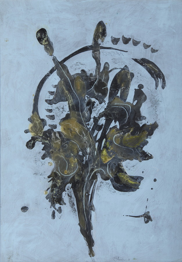 PALMIERI CLAUDIO (n. 1955) ALBERO SCURO, 2011. Tecnica mista su cartone. Cm 51,00 x 72,00. firma