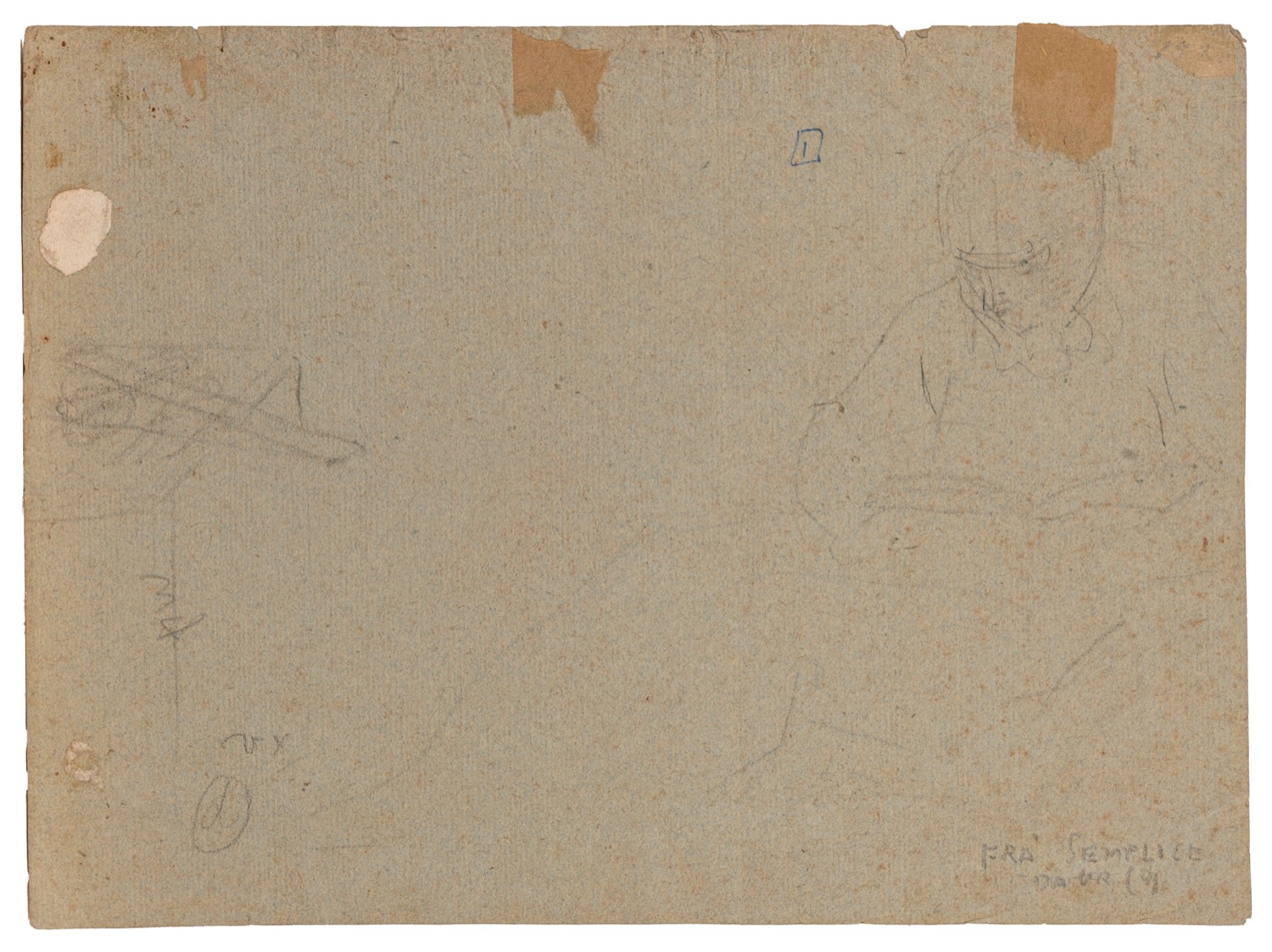 al verso schizzi a matita e annotazione moderna del collezionista in basso a destra FRA SEMPLICE / DA VER (?)
