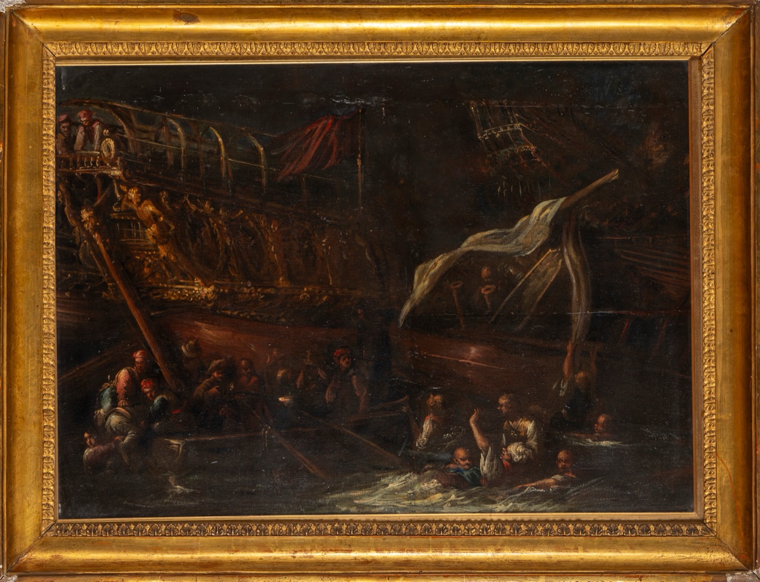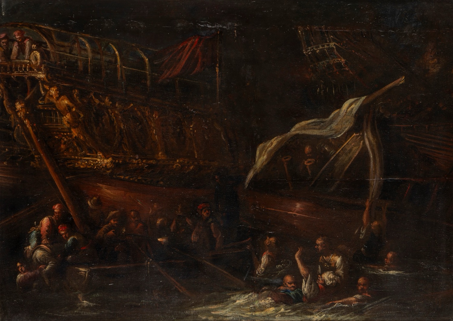 Scuola italiana, secolo XVII ( ) - Scena di naufragio,