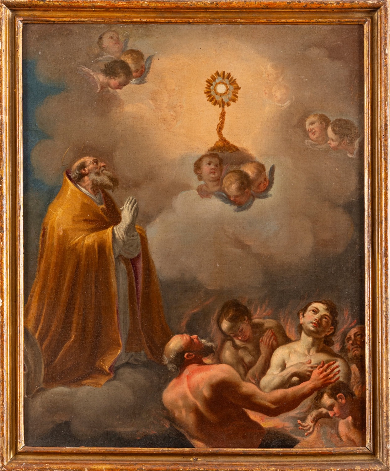 Scuola napoletana, secolo XVIII ( ) - Santo Vescovo in adorazione del Santissimo Sacramento,