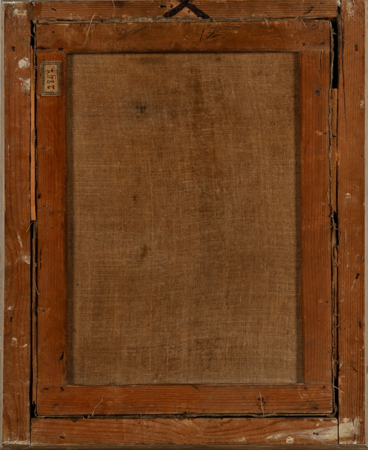 al retro, sul telaio, vecchia etichetta con numero di inventario 2897