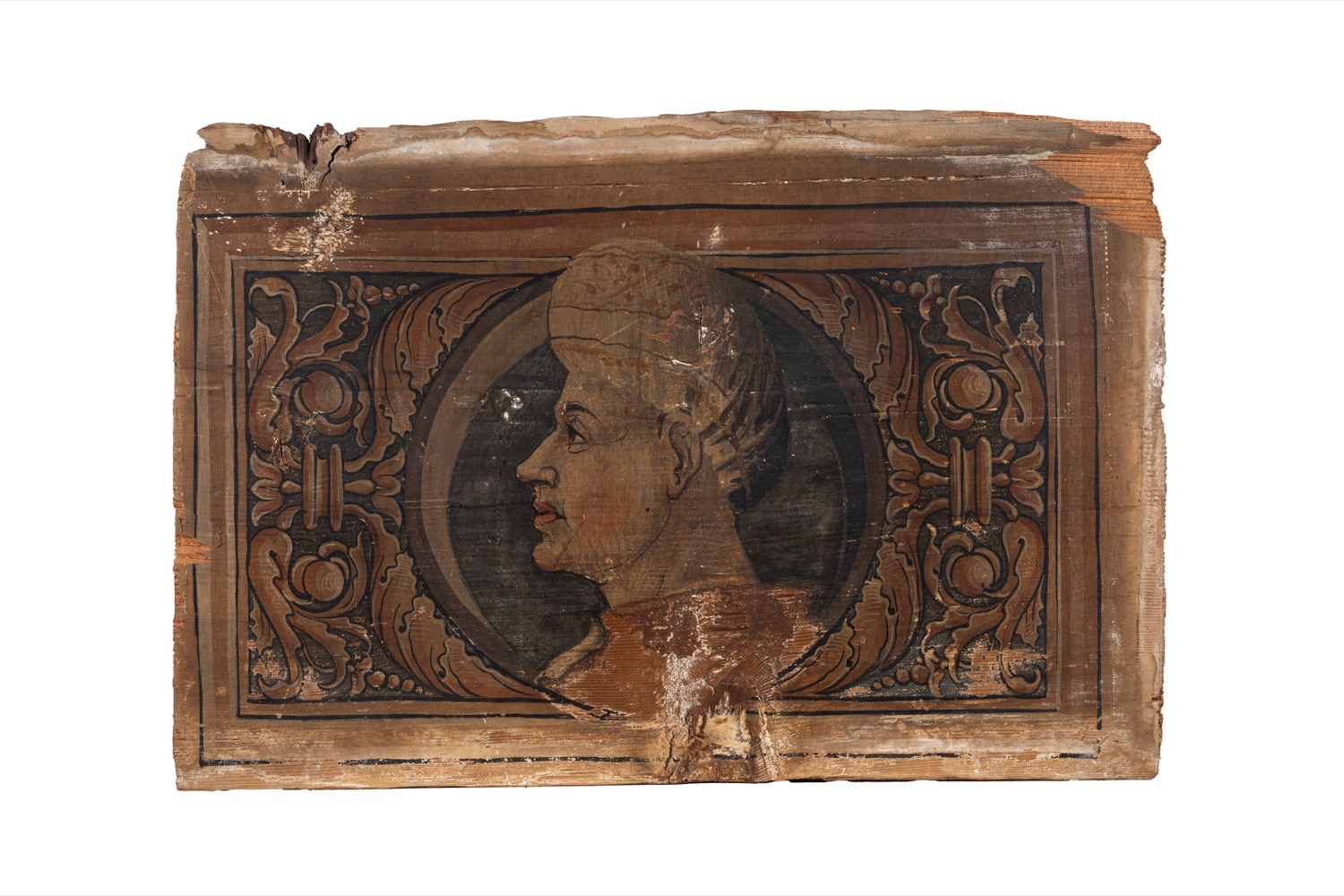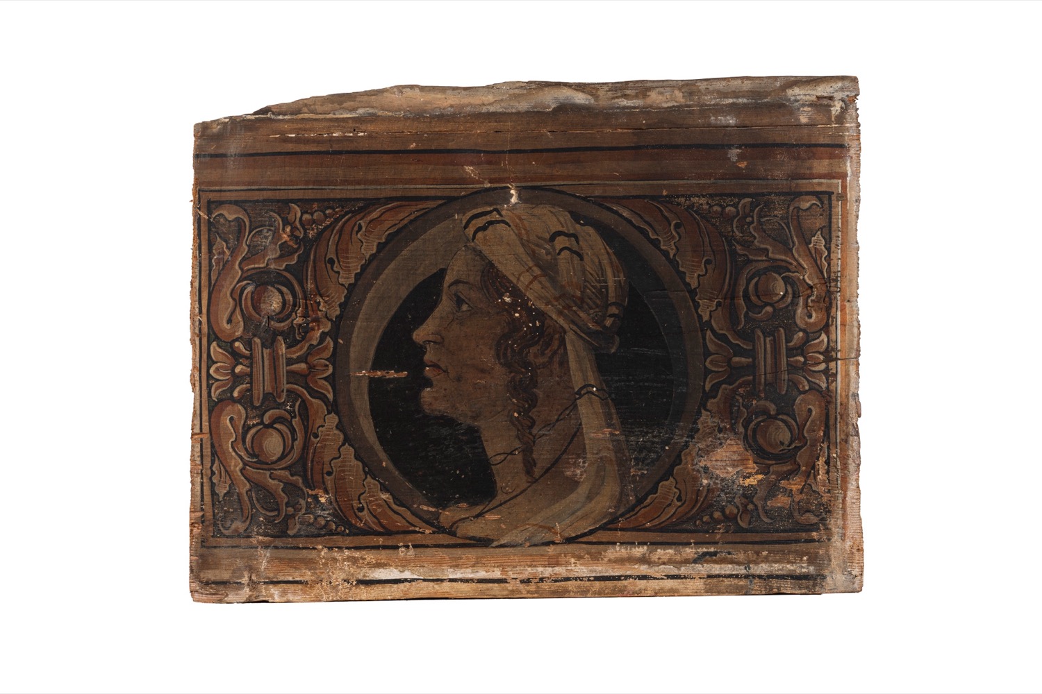 Lotto 153 | Scuola lombarda, secolo XVI ( ) - Due tavelle da soffitto con profilo maschile e profilo femminile,
