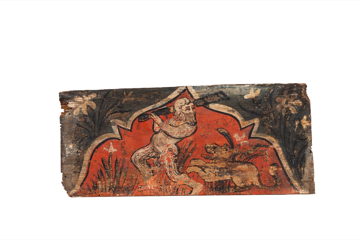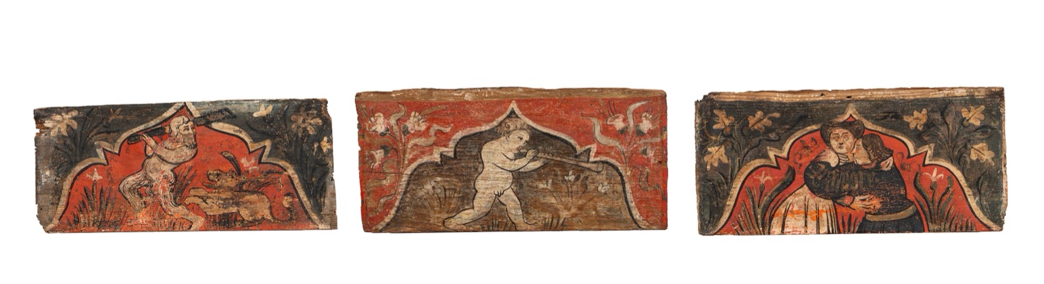 Scuola lombarda, secolo XVI ( ) - Tre tavelle da soffitto con figure,