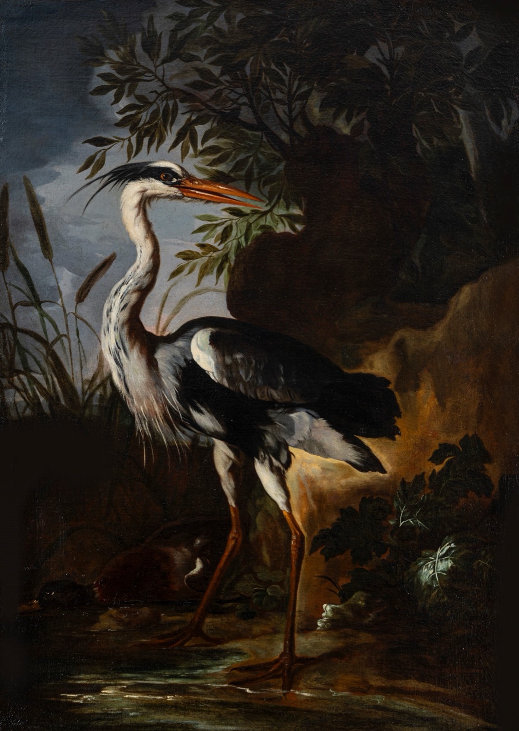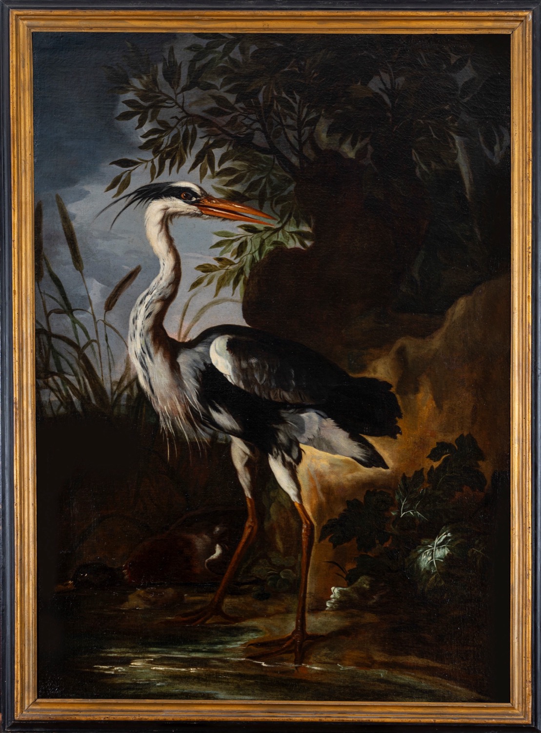Scuola dell'Italia settentrionale, fine secolo XVII - inizi secolo XVIII ( ) - Airone cinerino con anatra presso uno stagno,