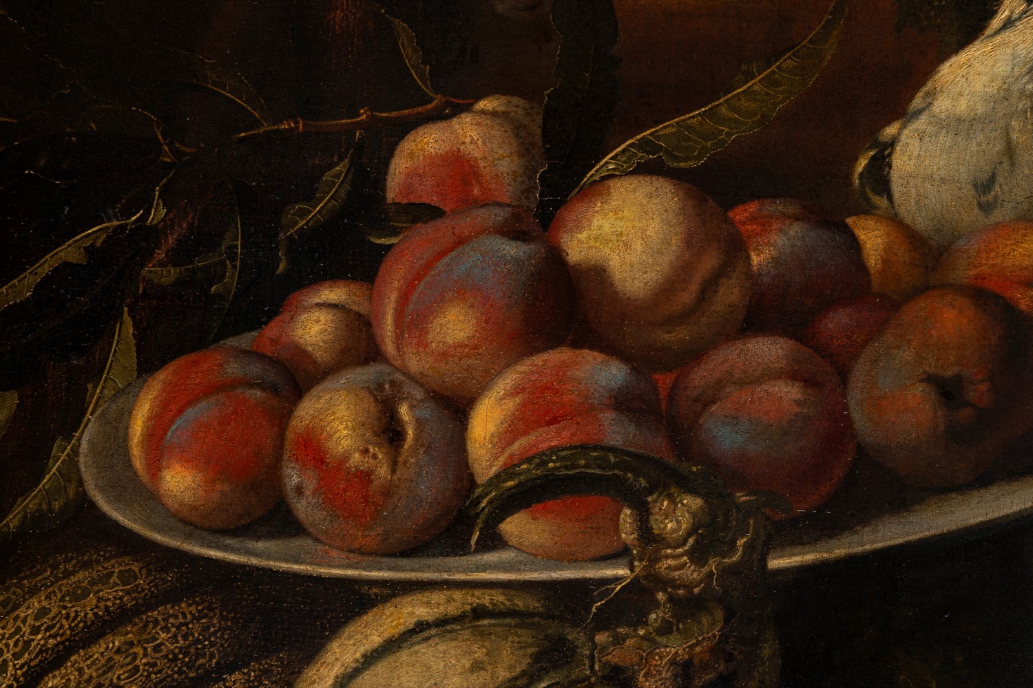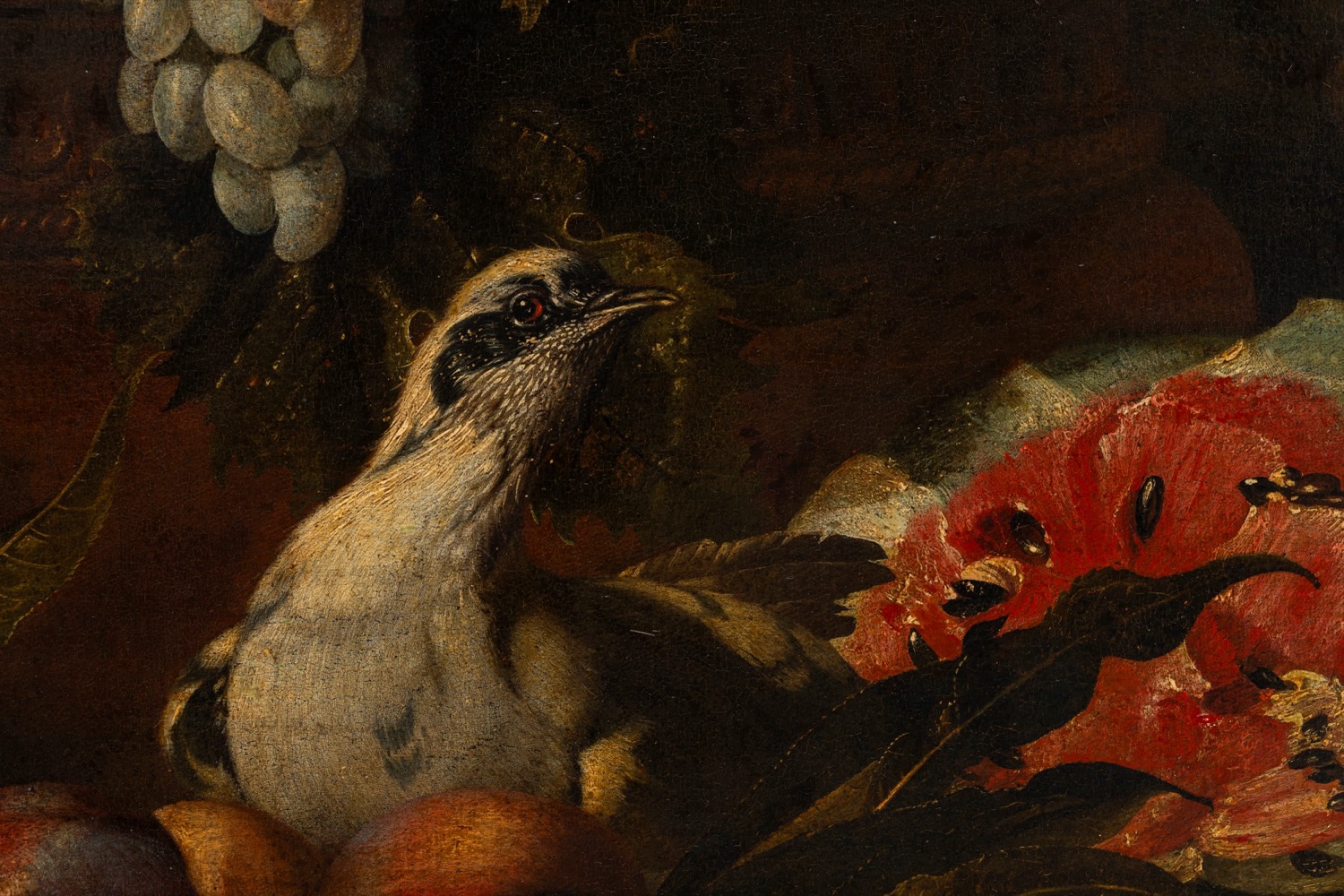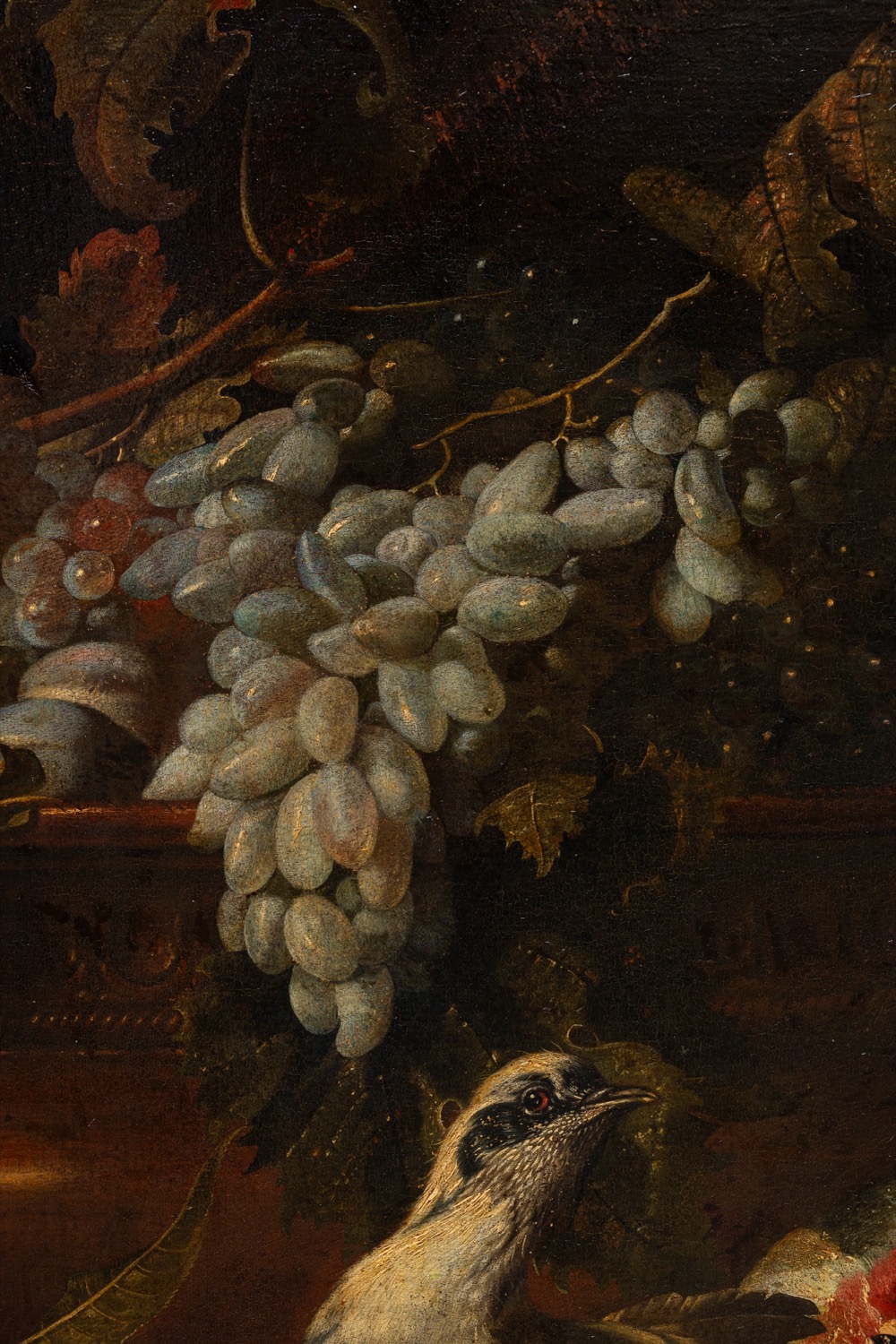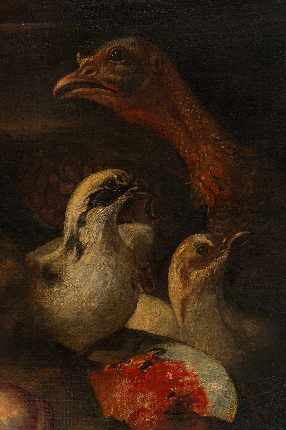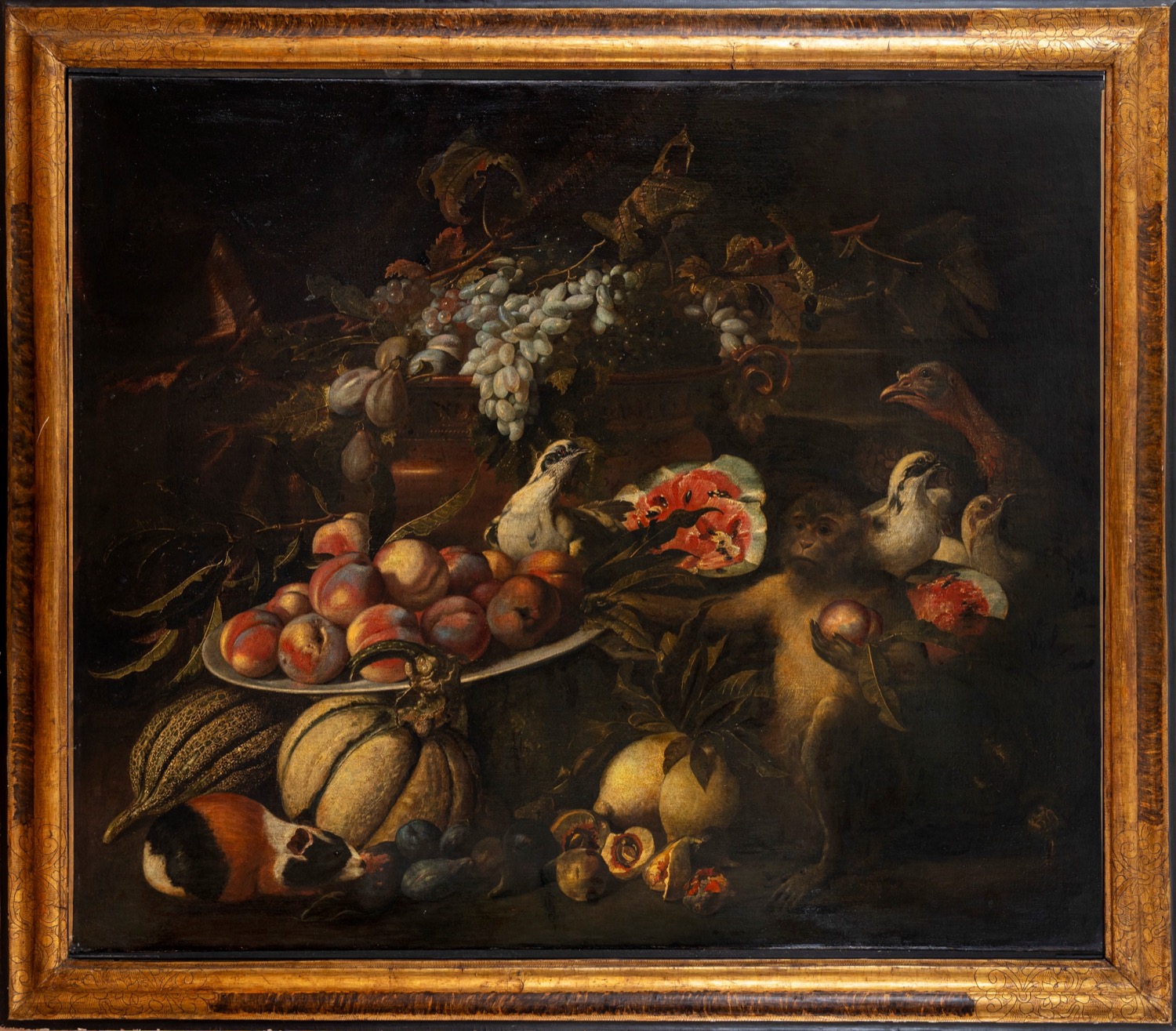 Pittore fiammingo attivo in Italia, secolo XVII ( ) - Natura morta di frutta con scimmia, porcellino d'india e volatili,