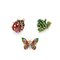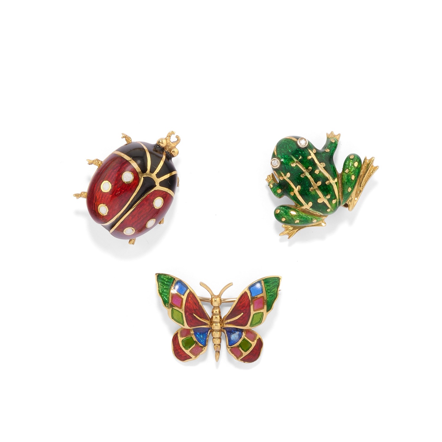 a foggia di coccinella, rana e farfalla, decorate con smalti policromi.