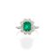 al centro smeraldo di forma rettangolare a contorno ottagonale di ct 1,15 circa entro contorno in diamanti taglio brillante per totale ct 1,00 circa.