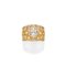 a fascia lavorata, incisa e traforata, con diamanti taglio brillante, al centro acquamarina taglio rotondo sfaccettato.