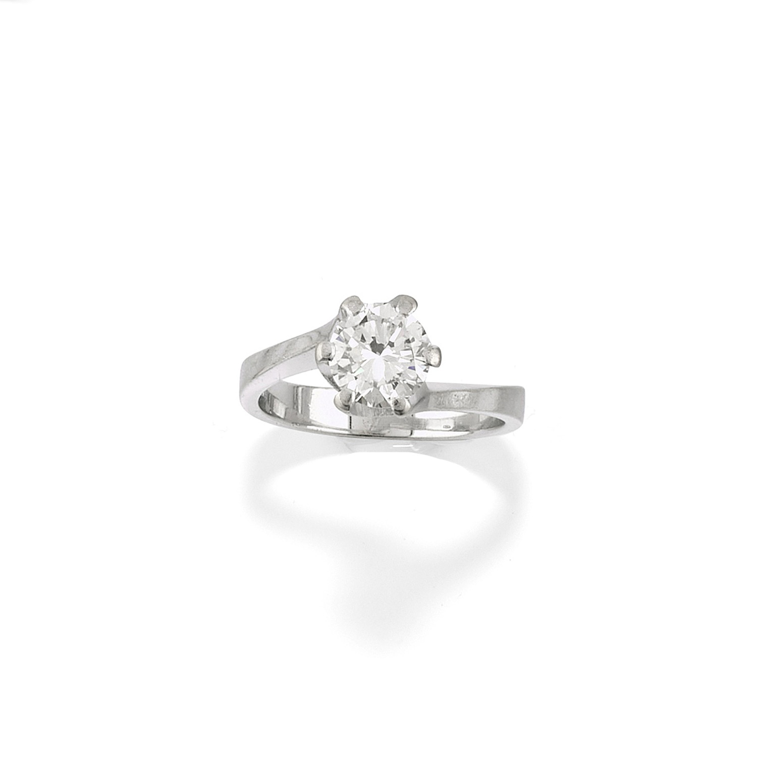 solitario a sei griffe, con diamante taglio brillante di ct 1,30 circa (prob. colore H/I purezza VS).