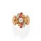 con diamanti taglio vecchio per totale ct 0,30 circa e rubini taglio rotondo.