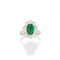 al centro smeraldo taglio ovale di ct 1,00 circa entro contorno in diamanti taglio brillante e tapered baguette per totale ct 1,10 circa.