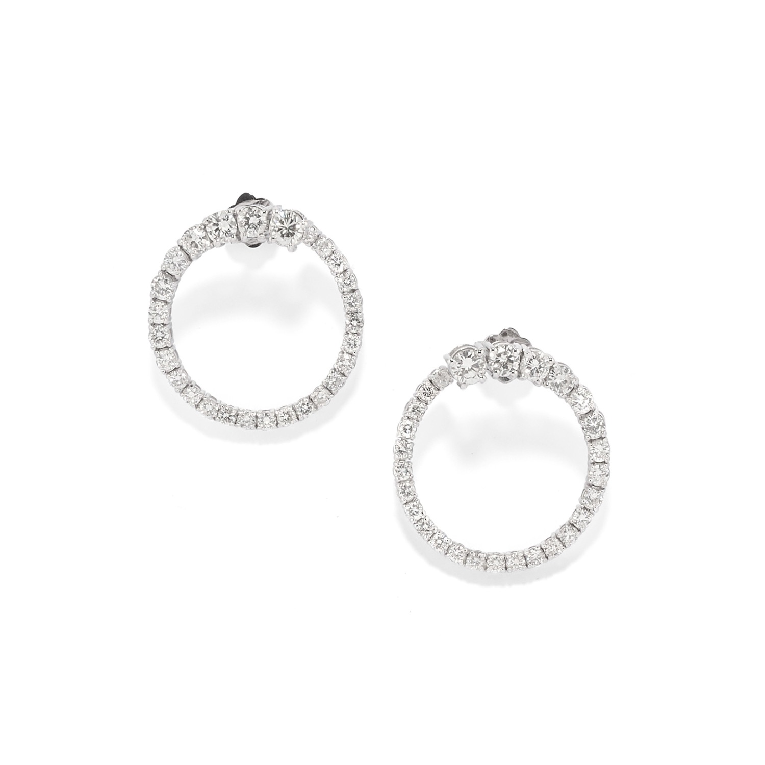 di forma circolare, montatura leggermente elastica, con diamanti taglio brillante a scalare per totale ct 2,30 circa, chiusura perno e farfalla.