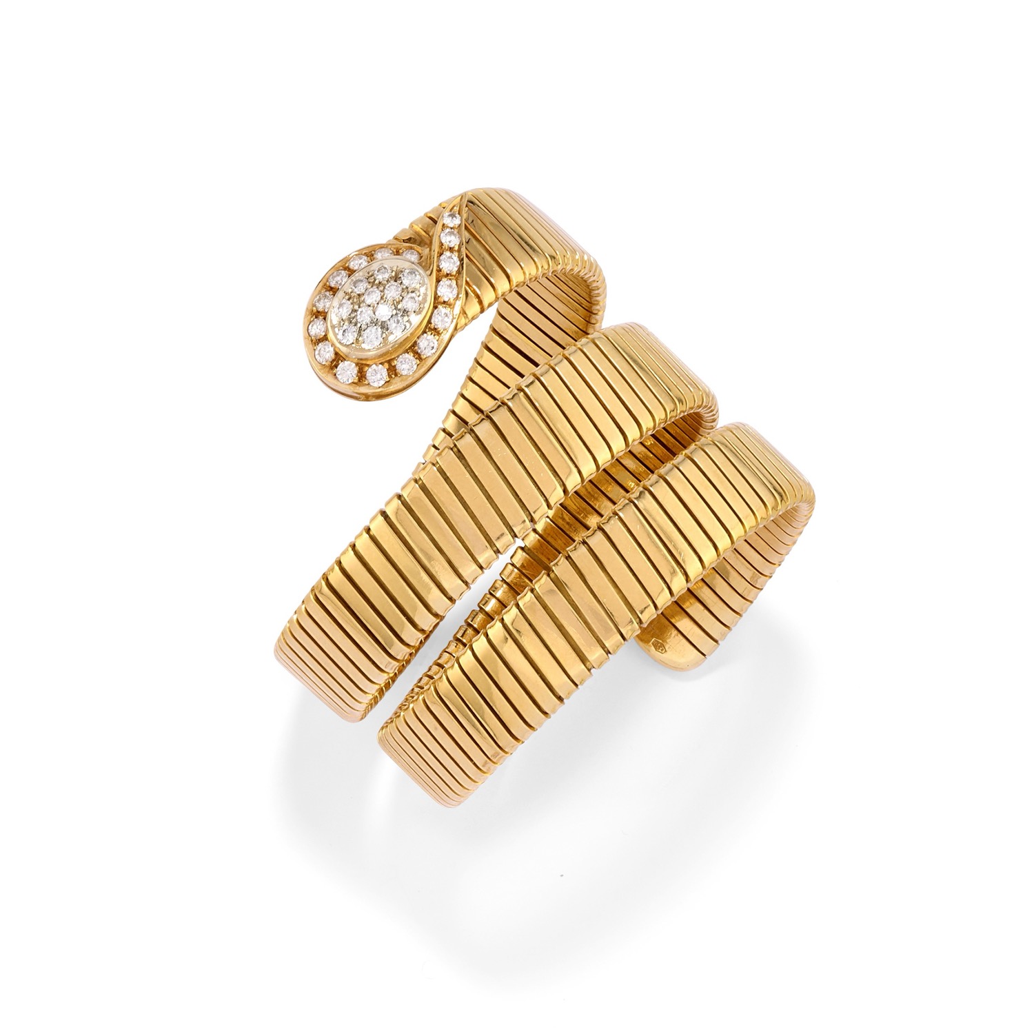 maglia piatta elastica a tre giri con testa in diamanti taglio brillante per totale ct 0,60 circa.