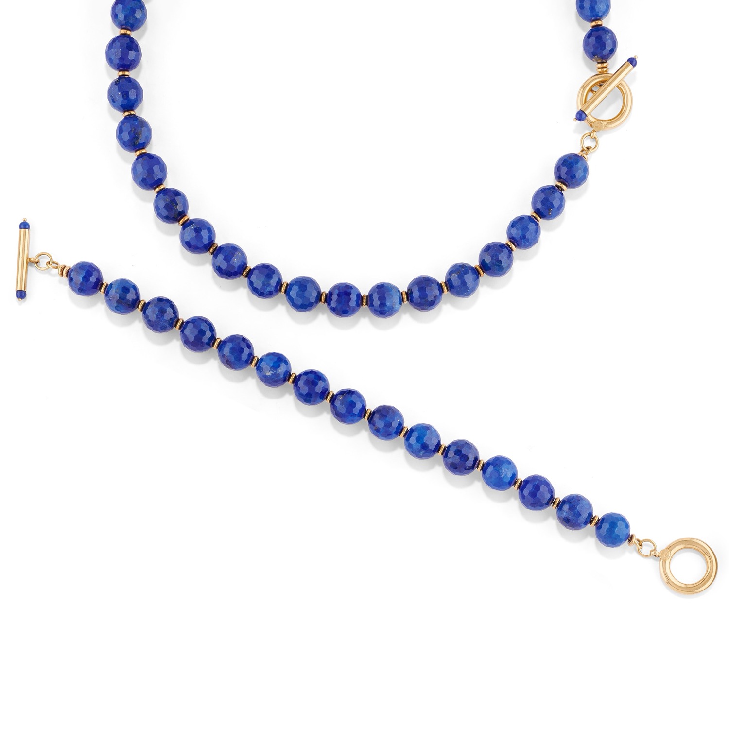 composta da collana e bracciale ad un filo di boules sfaccettate in lapislazzuli di mm 10,00 circa.
