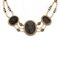 a due fili di perle coltivate intervallati a settori in oro e pietre di colore, al centro tre cammei su pasta vitrea, difetti (sbeccatura ad un cammeo).