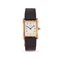 cassa rettangolare, quadrante bianco con numeri arabi in smalto nero, movimento al quarzo, cinturino in pelle, con astuccio e garanzia, difetti (vetro rotto), da revisionare.