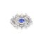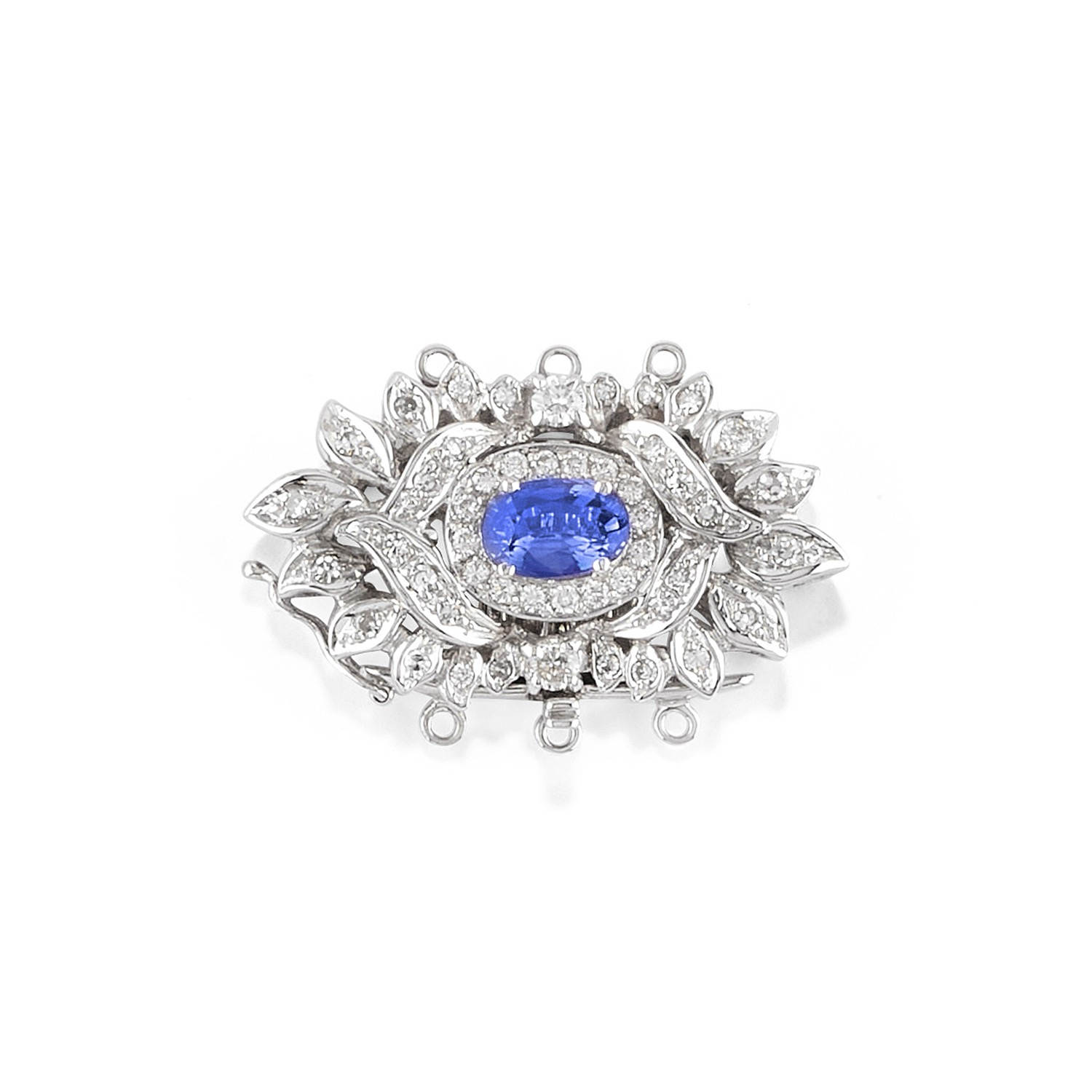al centro zaffiro taglio ovale di ct 0,80 circa, contorno in diamanti taglio brillante e huit-huit.