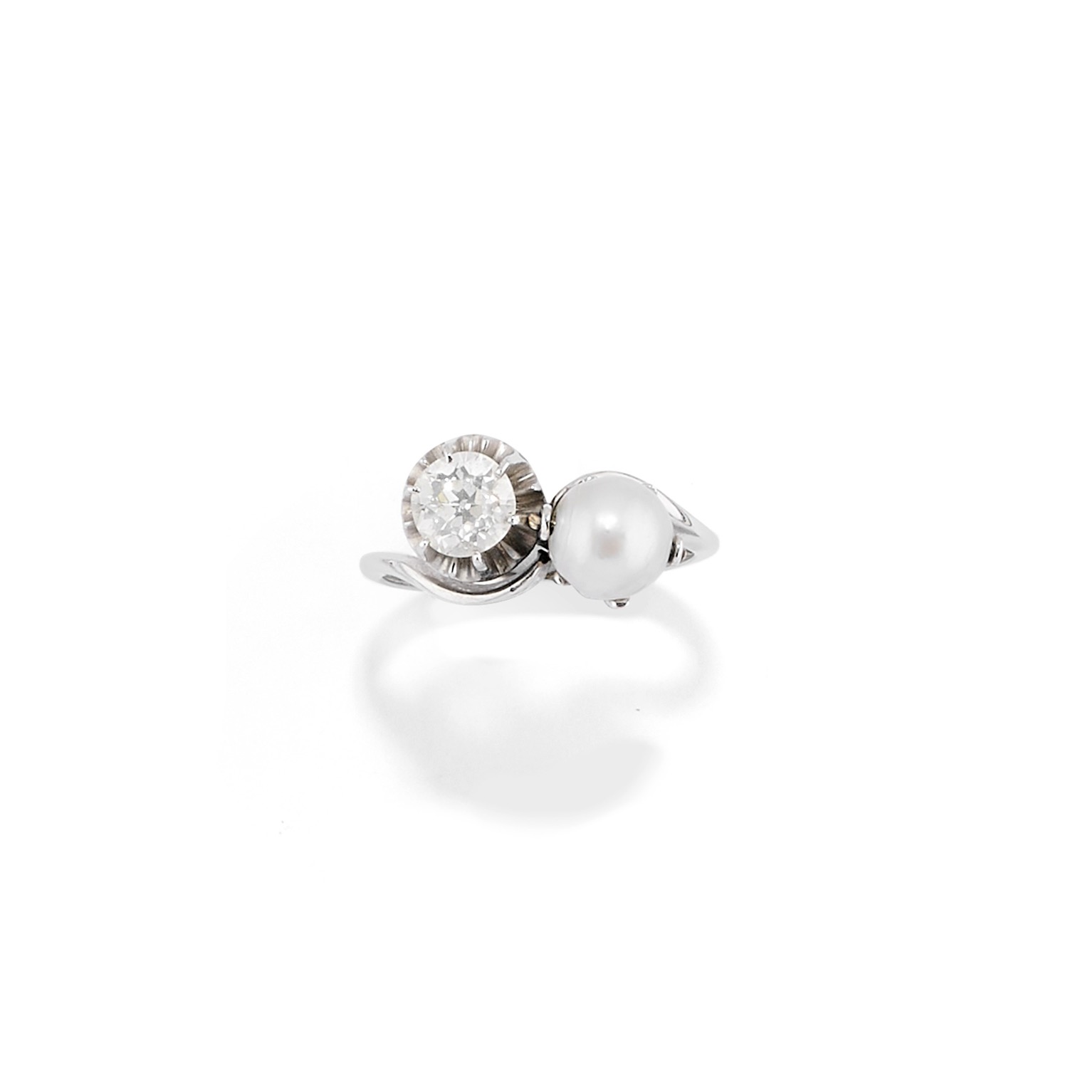 uno con quattro diamanti taglio brillante per totale ct 0,60 circa, l'altro con perla coltivata su perno girevole e diamante taglio vecchio di ct 0,80 cira.