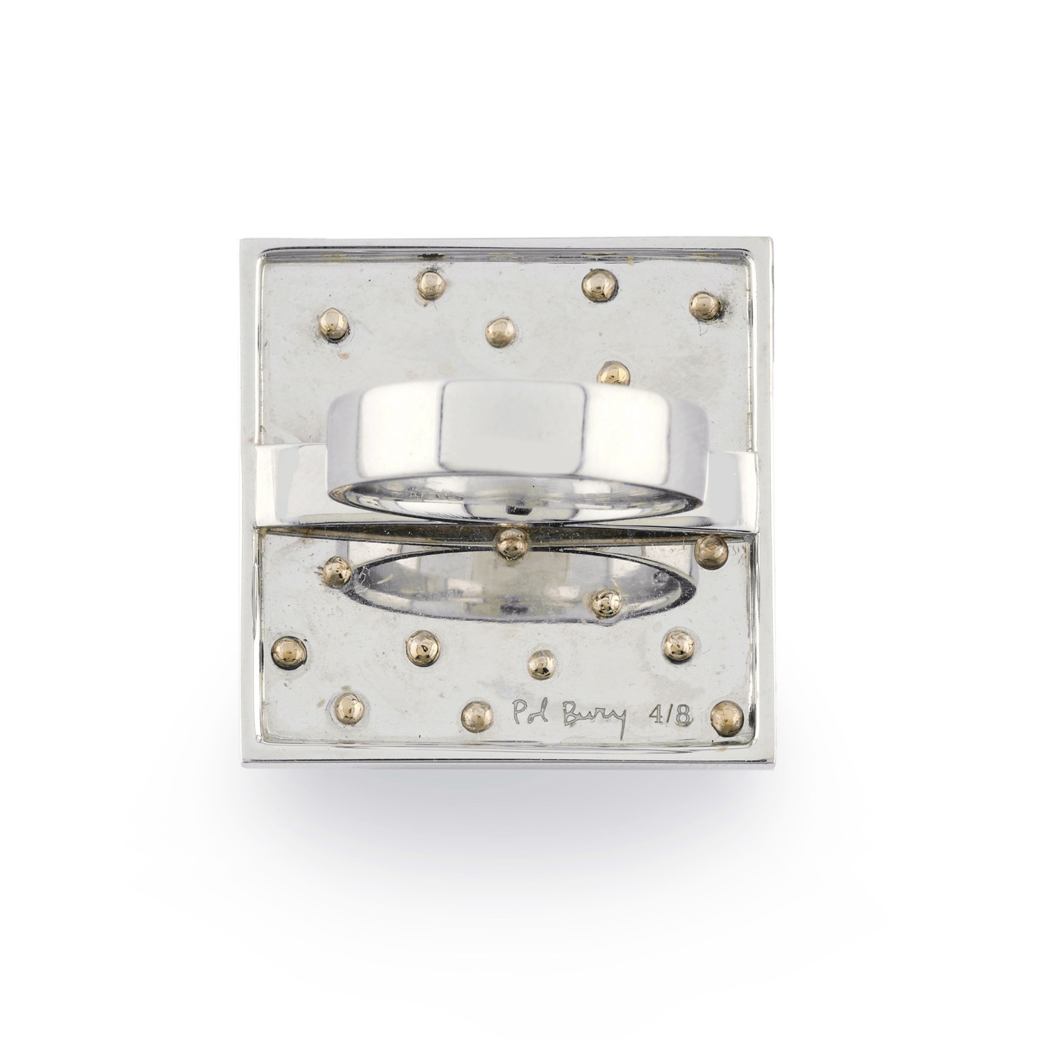 Pol Bury - Anello quadrato con boules mobili in oro bianco 18k