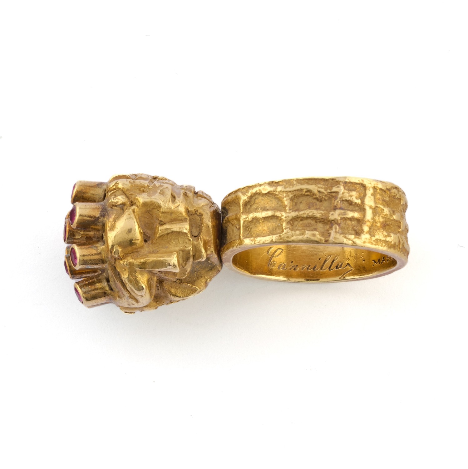 Franco Cannilla per Masenza - Anello con testa girevole e rubini in oro giallo 18k