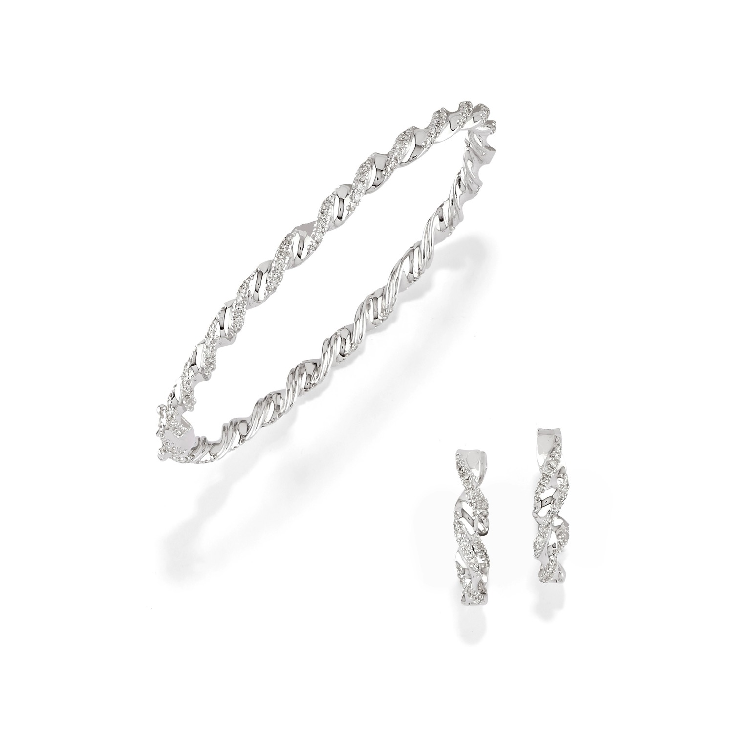 composta da orecchini e bracciale torchon con diamanti taglio brillante, chiusura perno e clip, con astuccio.