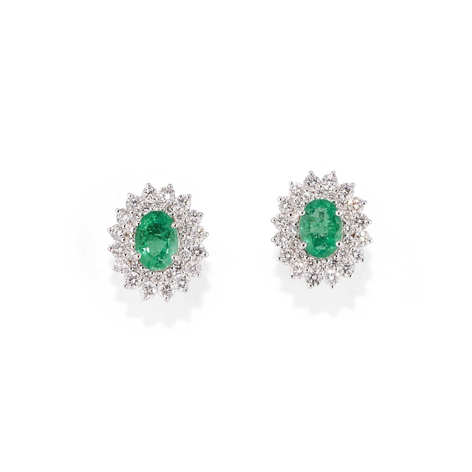 al centro smeraldi taglio ovale per totale ct 2,00 circa, contorno in diamanti taglio brillante per totale ct 1,60 circa.