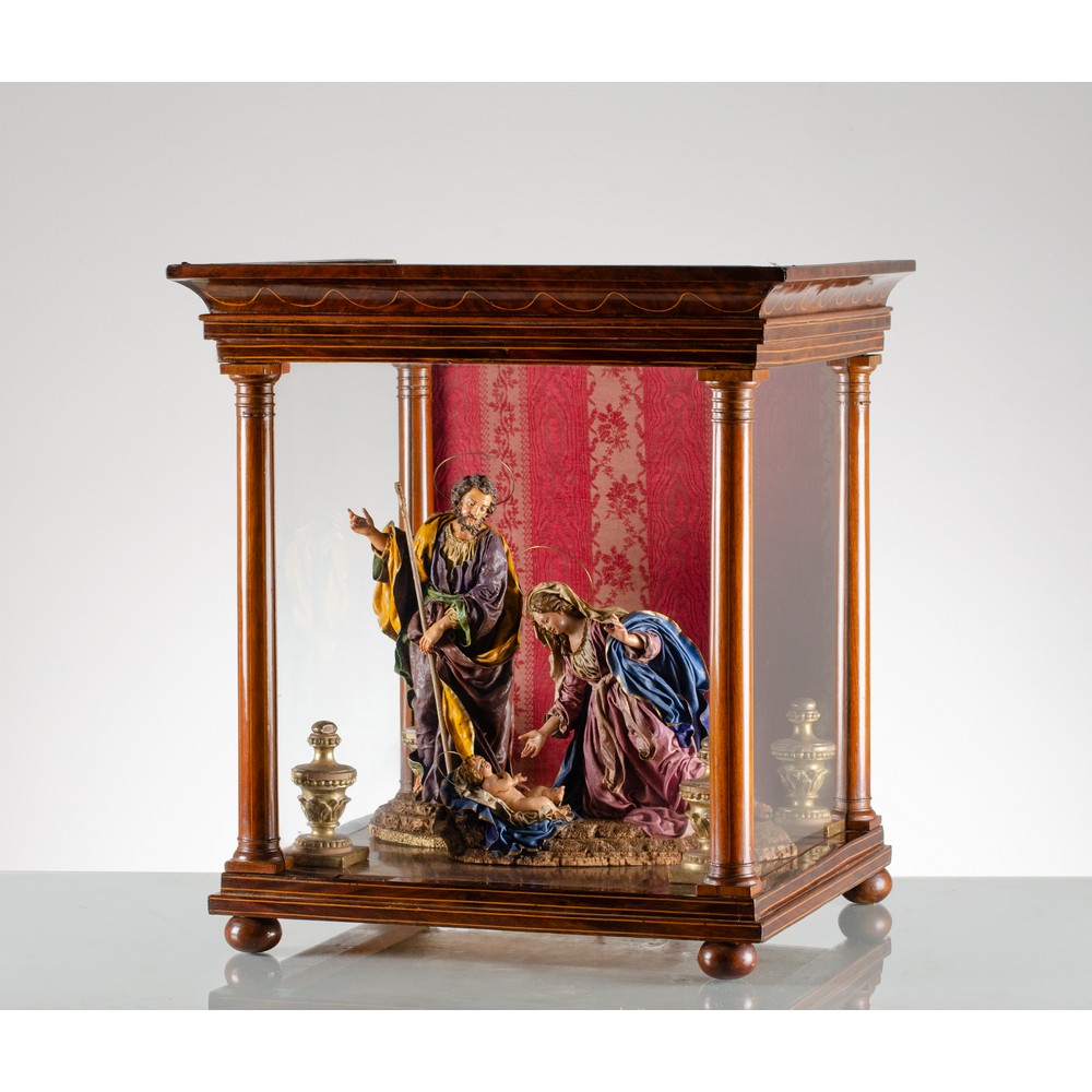 MANIFATTURA SICILIANA DEL XIX SECOLO, Presepe entro teca