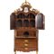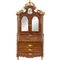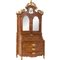 Trumeau di gusto barocco in legno di noce, fregi dorati e laccati con gioco di putti, composto da tre cassetti e ribalta nella parte sottostante e due ante a specchio e specchio inciso nella parte sovrastante.
