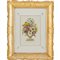 Cornice a vassoio in legno intagliato e dorato ad argento e mistura con all'interno incisione Francese del XIX secolo raffigurante "Vaso di Sevres con fiori"