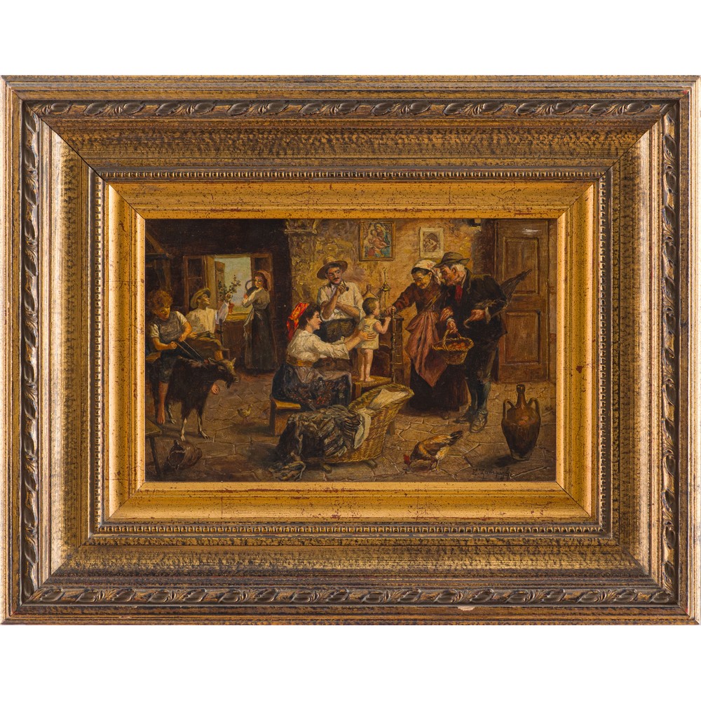 EUGENIO ZAMPIGHI, Scena di interno, Olio su tavola