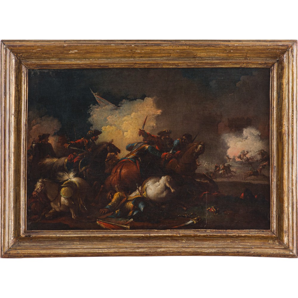 FRANCESCO SIMONINI (Attr.le), Battaglia, Olio su tela